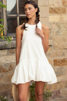 Discover the perfect dress for any occasion with our solid sleeveless bubble hem mini dress! Made with quality lining, this dress combines style and comfort for a flawless look. Dress it up or down, the possibilities are endless. Add a playful touch to your wardrobe today!