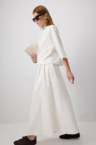 Camila Flowy Pleated Maxi Cotton Skirt – Off-White